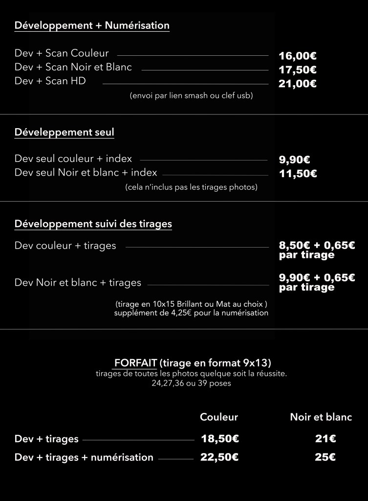 Les tarifs argentiques